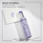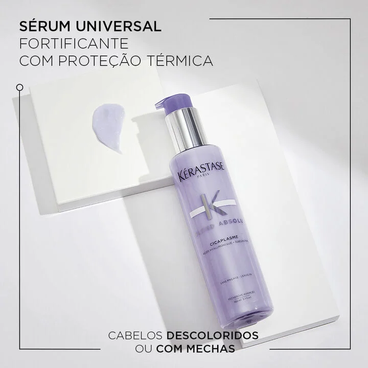 Quem disse que você tem que escolher entre cabelos loiros e modeladores térmicos? Você pode ter ambos com Blond Absolu Cicaplasme , o sérum protetor térmico para cabelos loiros da Kérastase. Sua fórmula desenvolvida para controlar o frizz possui Ácido Hialurônico e Flor de Edelweiss que trata instantaneamente as áreas danificadas da fibra e ainda contém filtro UV para proteger contra a oxidação diária e a poluição, contribuindo para a saúde e a vitalidade dos fios.